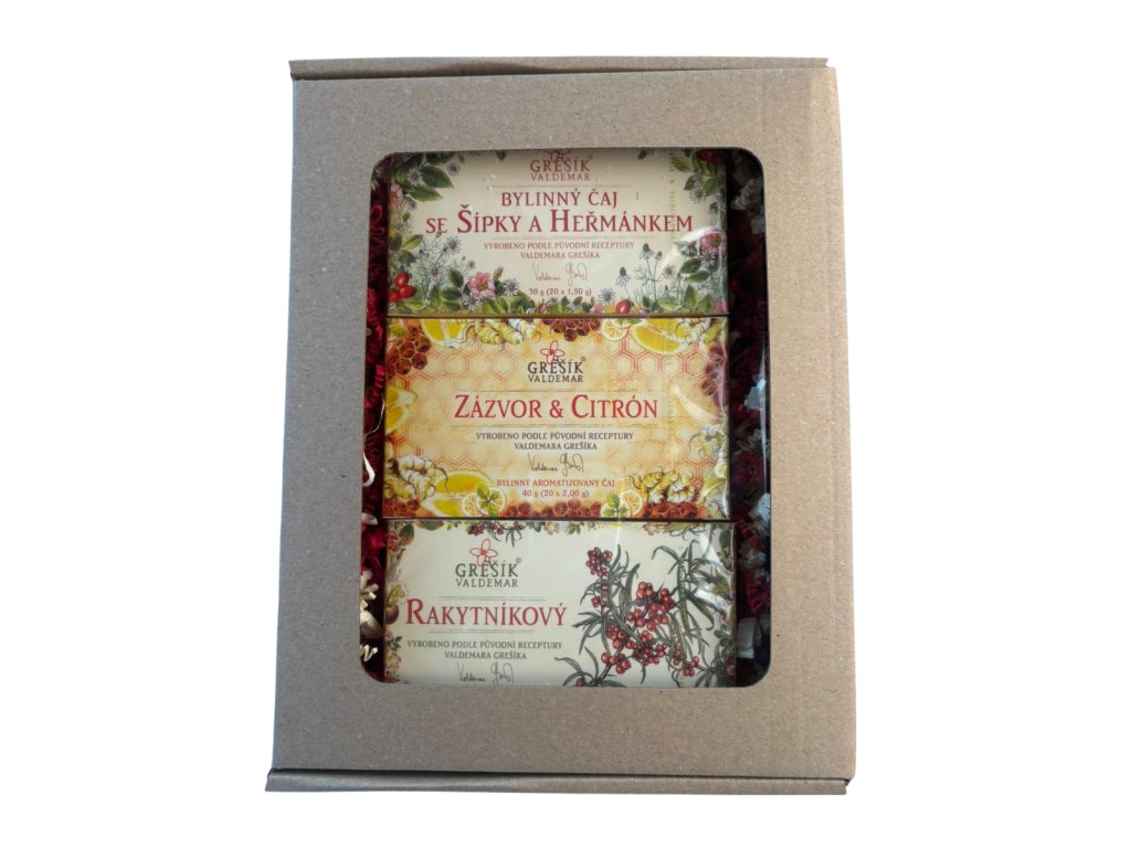 Dárkové balení čajů: Síla přírody v šálku – šípek & heřmánek, zázvor & citrón, rakytník