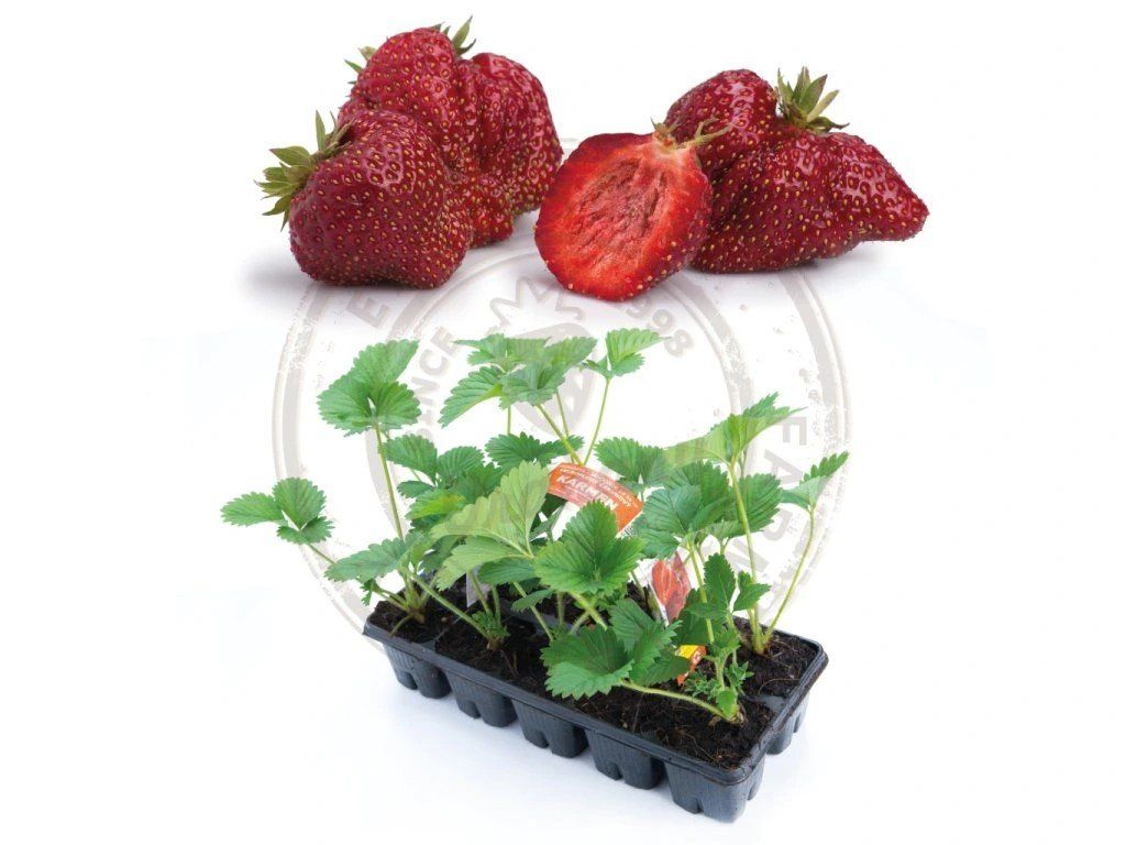 Sazenice jahod Karmen jsou k dispozici v balení 4plata po 10 kusech na plato. Každé balení obsahuje certifikované sazenice.