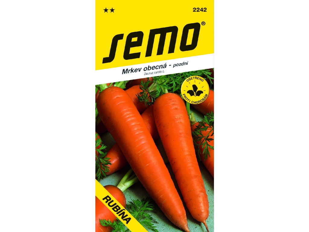 RUBÍNA – pozdní mrkev velmi vhodná k zimnímu skladování z raných výsevů v březnu až dubnu. Kořen je válcovitý, ve spodní části se zužující, částečně tupě zakončený, 16 – 17 cm dlouhý. Barva kořene je intenzivně oranžovo-červená. Odrůda je odolná vůči vybíhání do květu, praskání a větvení kořenů. Ze 100 m2 lze sklidit 500 – 600 kg kořenů. Má velmi dobrou skladovatelnost. Vegetační doba je 160 – 180 dní.