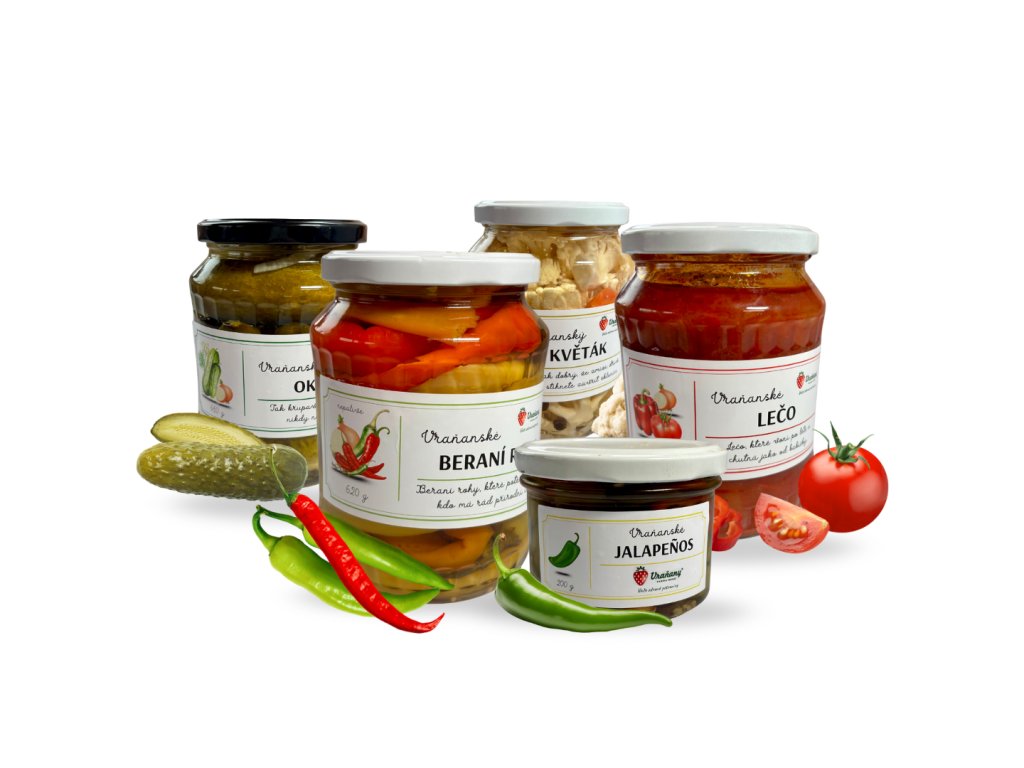 Tento zvýhodněný set české nakládané zeleniny spojuje tradiční chutě, poctivé zpracování a suroviny vypěstované přímo ve Vraňanech, bez zbytečného převážení a kompromisů.