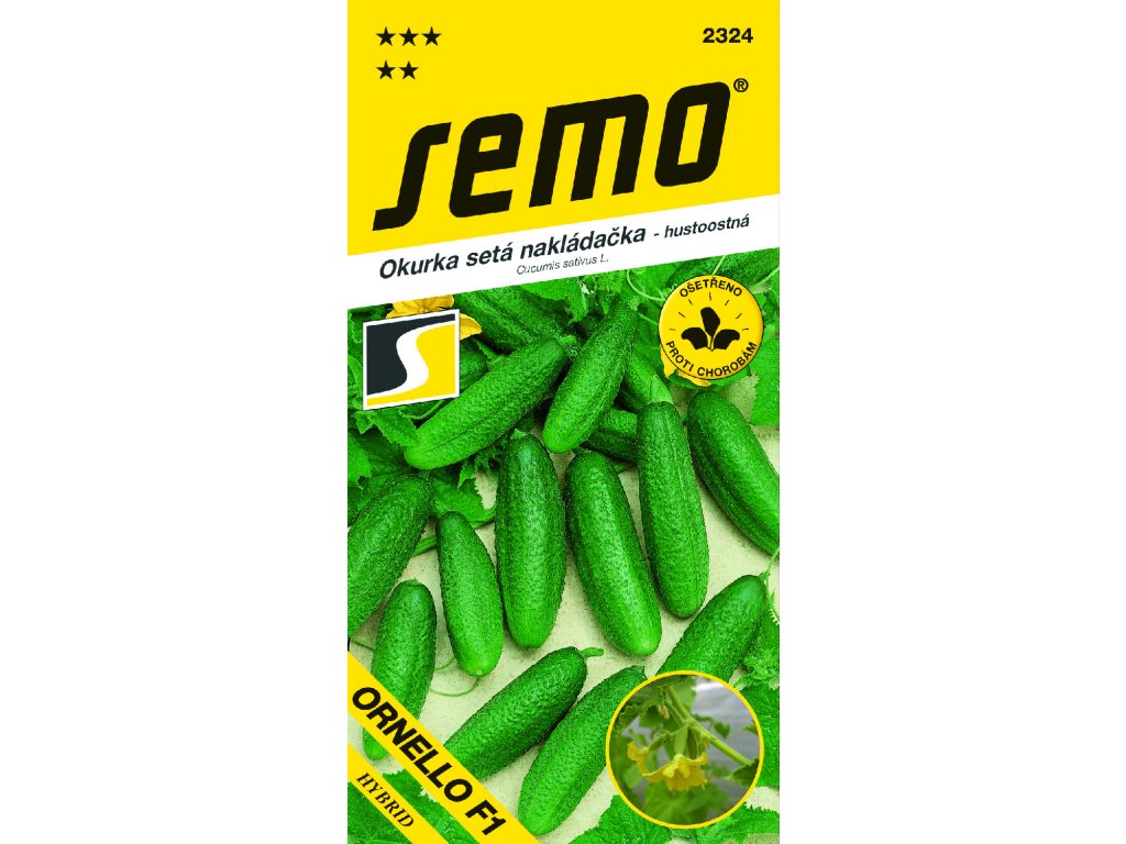 Ornello F1 – hybridní poloraná odrůda okurky nakládačky. Rostlina je slabě vzrůstná, kvetení je převážně samičí, délka plodů je středně dlouhá a plody jsou štíhlé, bradavičnatost jemná, hustší s bílým ostnem, geneticky nehořké. Vyznačuje se vysokým výnosovým potenciálem, vitalitou, odolností k přerůstání a deformacím a výraznou odolností k plísni okurkové. MULTIFRUIT (3–4 plody na nodu).