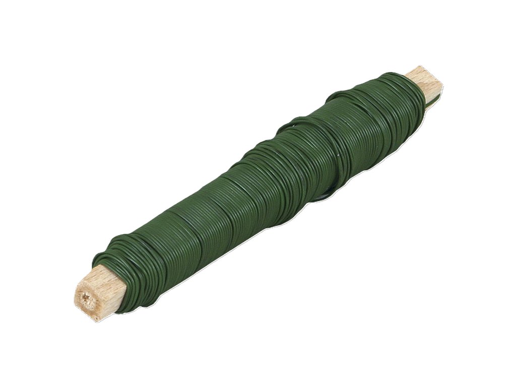 Floristický vázací drát vhodný pro aranžování květin, výrobu věnců, dekorací a další kreativní práce. Drát je potažen zeleným lakem, díky čemuž přirozeně splývá s rostlinným materiálem a nepůsobí rušivě. Navinutý na pevném dřevěném kolíku pro snadné používání.