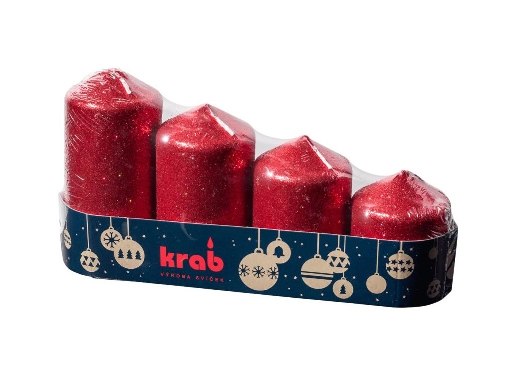 Stylové červené svíčky s flitrovým efektem v originálním tvaru „schodů“ rozzáří každý interiér.